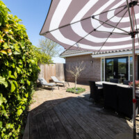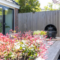De woning staat op ruim 300 m² grond en de tuin is volledig beschut en afsluitbaar met zon- en schaduwplekken. Vanaf ‘s morgensvroeg kun je al van de eerste zonnestralen genieten in de heerlijke loungestoelen. Op de twee ligbedden kun je relaxen en zonnen, en ’s avonds kun je heerlijk dineren aan de grote tuintafel. Het gras is perfect voor kinderen en bij mooi weer kun je een eigen zwembadje vullen voor extra waterpret.